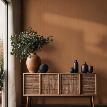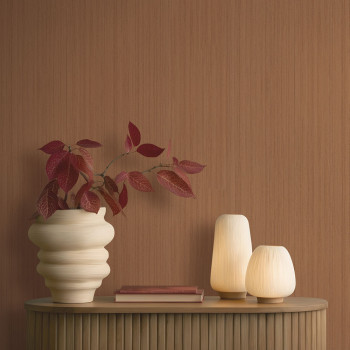 Vliesová tapeta s vinylovým povrchem, odstíny hnědé, jemně plastická látková textura.