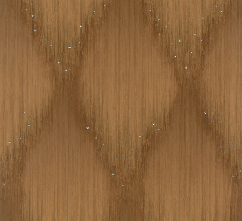 Vliesová tapeta s vinylovým povrchem, proužková textura v odstínech hnědé, metalické zlaté odlesky vytváří grafický vzor se štrasovými krystaly.