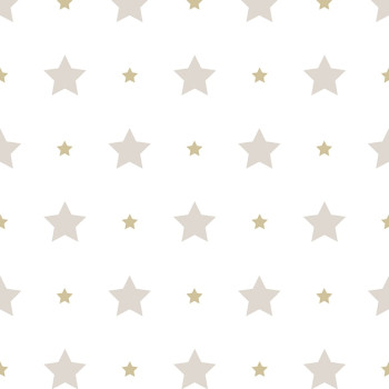 Kombinujte se souvisejícími tapetami, bordurami a bordurami z kolekce. Béžové a zlaté hvězdičky na bílé papírové tapetě na zeď.