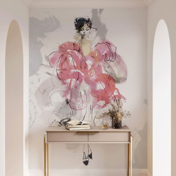 Vliesová obrazová tapeta na zeď, modelka, mačkaná textura, drobné třpytky.