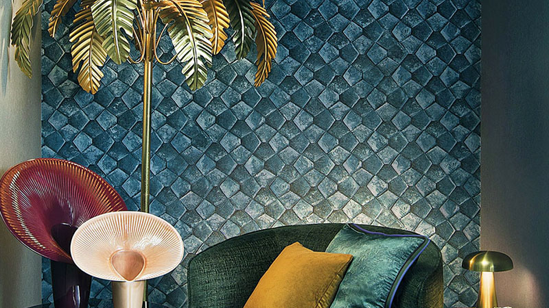 Eclectic zaujme neobvyklými povrchy a zajímavými efekty. Najdete tu jemné třpytky, metalické odlesky i struktury připomínající látku nebo kámen. Některé tapety mění barvu podle světla – z modré do tyrkysové nebo z měděné do zelené. Každý detail působí živě a přitom elegantně.