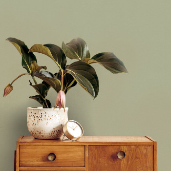 Vliesová tapeta s vinylovým povrchem, šalvějově zelená, hrubá látková textura.