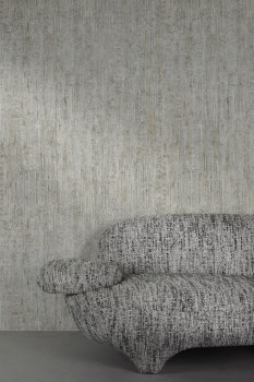 Vliesová tapeta s vinylovým povrchem, vzhled a textura evokující dřevo v odstínech šedé.