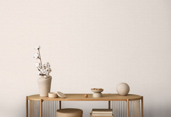 Vliesová tapeta s vinylovým povrchem, béžová, s nepravidelnými vodorovnými proužky, krupičková textura.