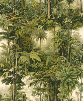 Vliesová tapeta na zed, motiv džungle, palem, stromů, listů.