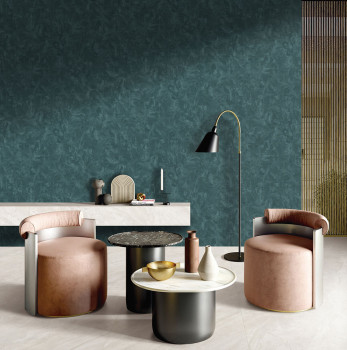 Luxusní vliesová tapeta s vinylovým povrchem, vzhled tyrkysové mačkané látky s jemnými zlatými odlesky.
