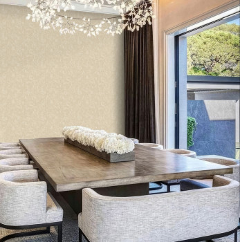 Luxusní vliesová tapeta s vinylovým povrchem, vzhled béžové mačkané látky s jemnými metalickými odlesky.