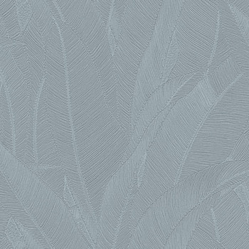 Luxusní vliesová tapeta s vinylovým povrchem, šedo-modrý podklad, plastické stříbrné linie tvoří stylizované listy.