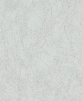 Šedo-zelená vliesová tapeta s vinylovým povrchem a metalickým prolisovaným abstraktním vzorem.