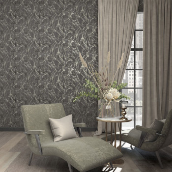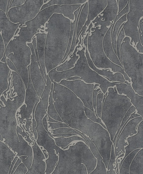 Černo-stříbrná vliesová tapeta s vinylovým povrchem, prolisovaný metalický stříbrný abstraktní vzor.