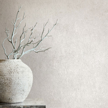 Šedá vliesová tapeta s vinylovým povrchem, dekor štukové omítky, mat a jemný pololesk, jemná textura.