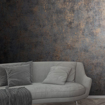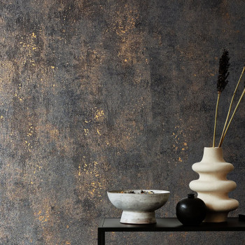 černo-hnědá vliesová tapeta s vinylovým povrchem, dekor štukové omítky, mat a jemný bronzový pololesk, jemná textura.