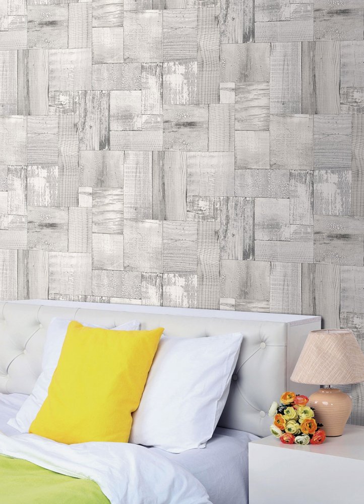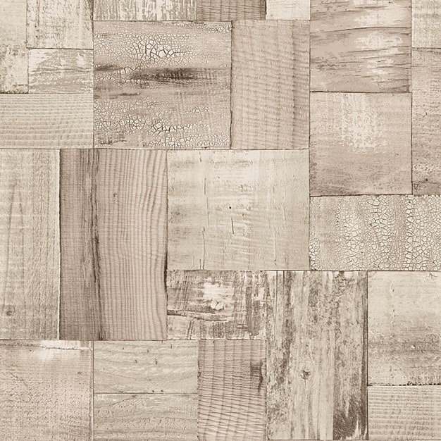 Dřevo je přírodní materiál, ze kterého dýchá krása, elegance a pohoda. Design dřeva zútulní každý interiér. Imitace dřevěného mozaikového obkladu na vliesové tapetě na zeď. K lepení doporučujeme lepidlo značky Beeline.
