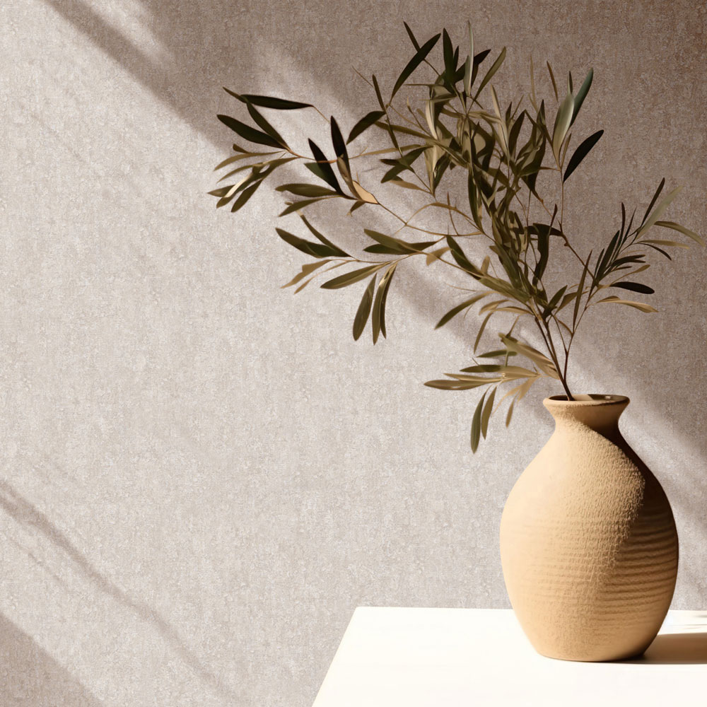 Vliesová tapeta s vinylovým povrchem, dekor béžové štukové omítky, jemná textura.