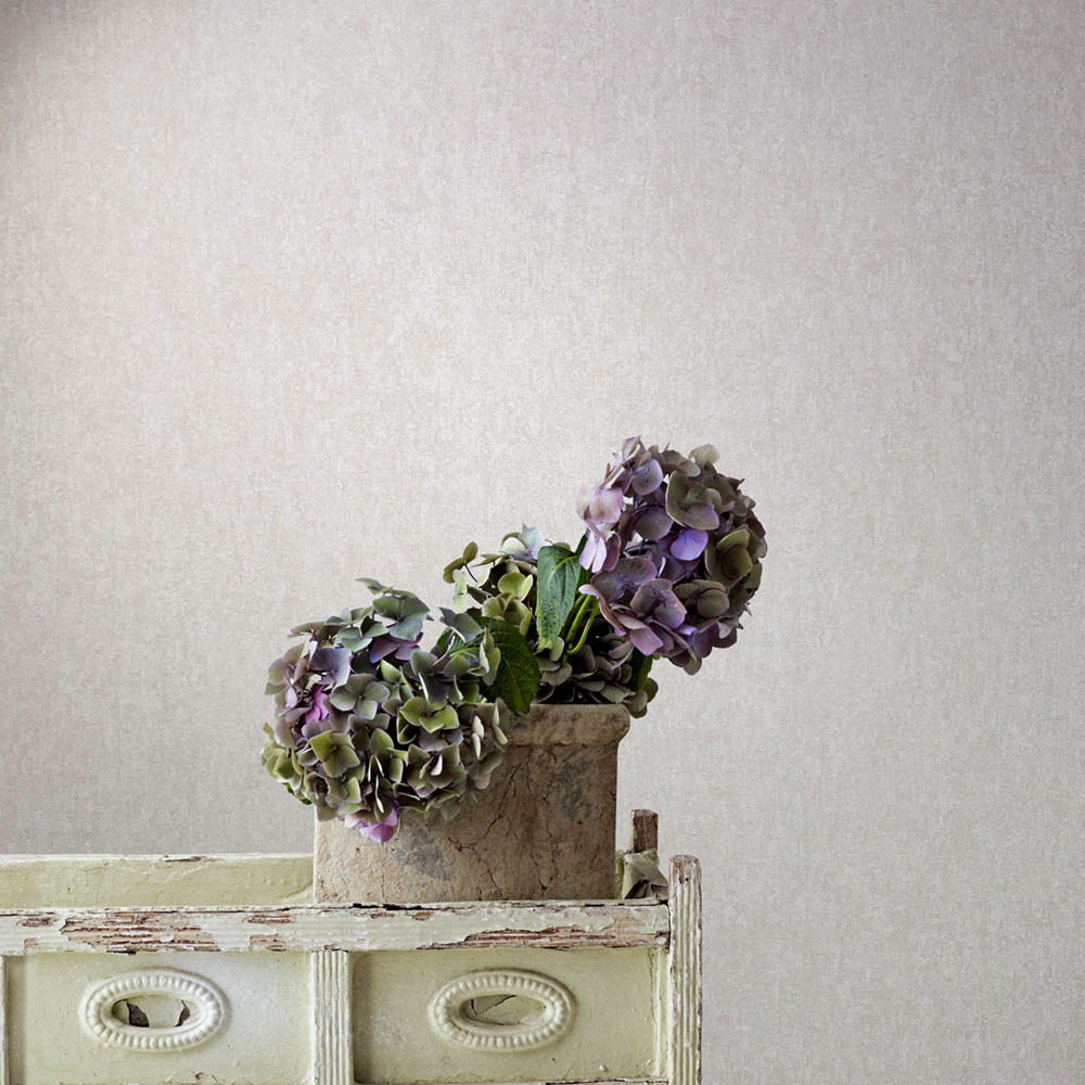 Vliesová tapeta s vinylovým povrchem, dekor šedo-bílé štukové omítky, jemná textura.