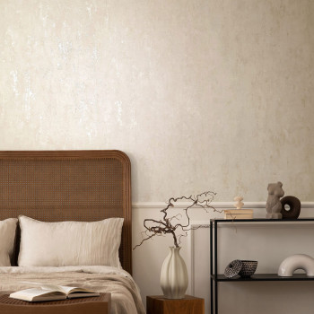 Vliesová tapeta s vinylovým povrchem, dekor světle béžové štukové omítky, jemná textura.
