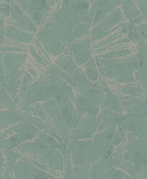 Vliesová tapeta na zeď, odstíny zelené, prolisovaný šedo-stříbrný grafický vzor.