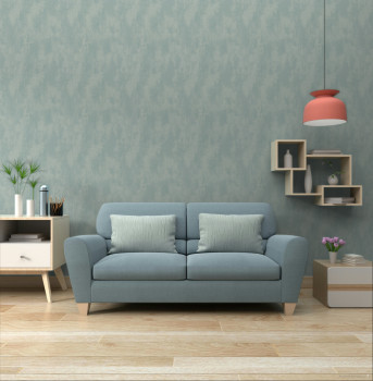 Vliesová tapeta na zeď, odstíny matné šedo-zelené, vzhled štukové omítky.