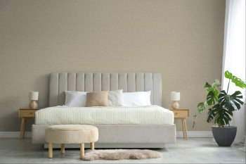 Vliesová tapeta na zeď, odstíny matné hnědo-béžové, vzhled a textura betonu / štukové omítky.