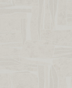 Vliesová tapeta na zeď, odstíny matné a pololesklé šedo-béžové, plastický vzor evokující kámen, kamenný obklad.