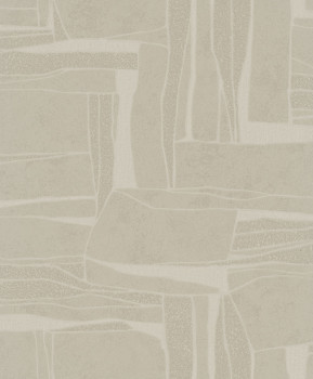 Vliesová tapeta na zeď, odstíny matné a pololesklé hnědo-béžové, plastický vzor evokující kámen, kamenný obklad.