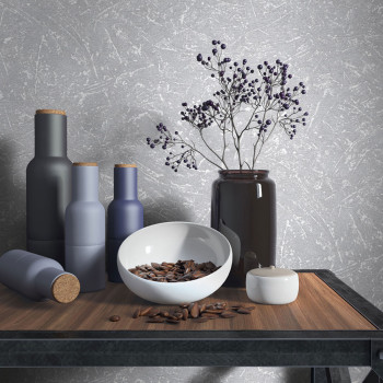 Vliesová tapeta s vinylovým povrchem, šedá stěrková textura.