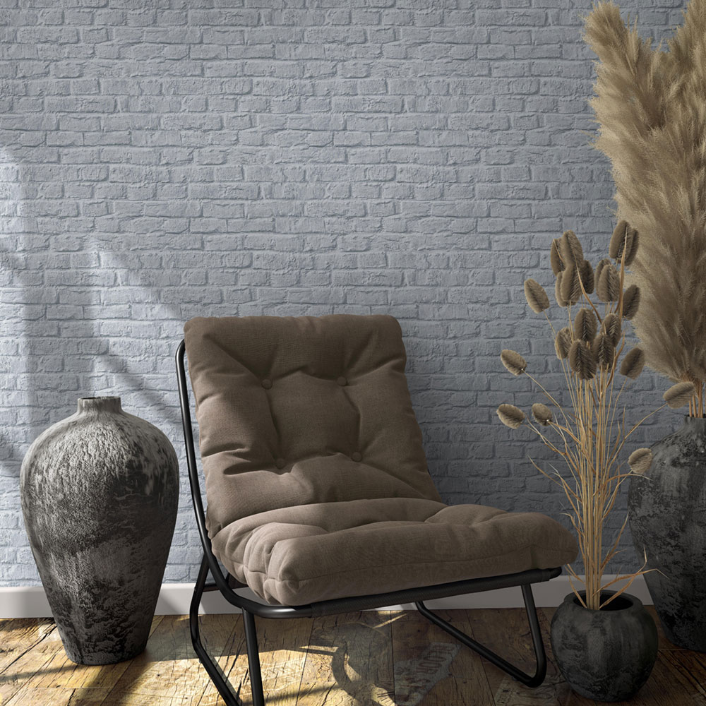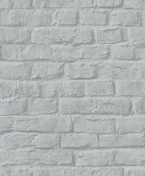 Vliesová tapeta s vinylovým povrchem, dekor cihlové zdi, hrubší textura, odstíny šedé.