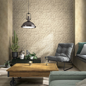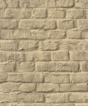 Vliesová tapeta s vinylovým povrchem, dekor cihlové zdi, hrubší textura, odstíny béžové a hnědé.
