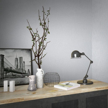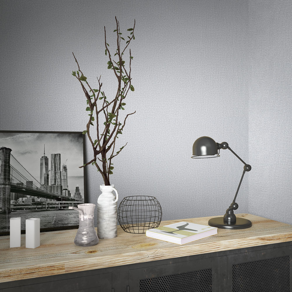 Vliesová tapeta s vinylovým povrchem, hrubší šedá látková textura.