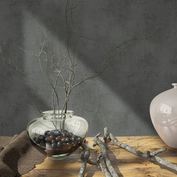 Vliesová tapeta s vinylovým povrchem, tmavě šedá, jemná stěrková textura.