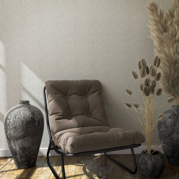 Vliesová tapeta s vinylovým povrchem, hrubší béžová látková textura.