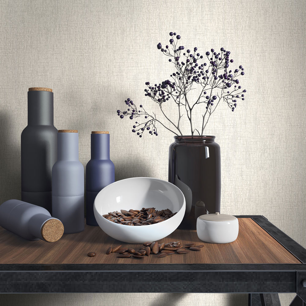 Vliesová tapeta s vinylovým povrchem, šedo-krémová, "škrábaná" textura.