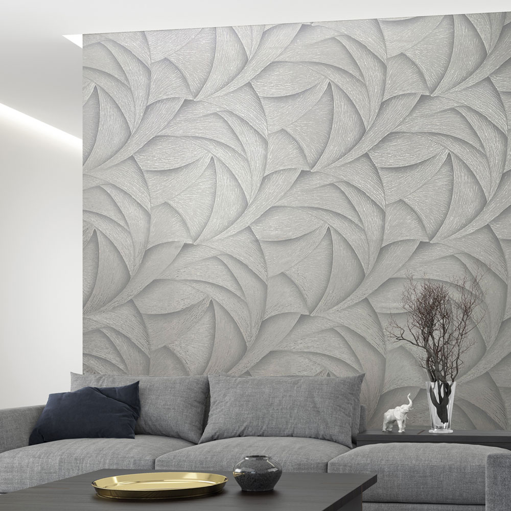 Vliesová tapeta s vinylovým povrchem, odstíny šedé s jemný perlovým leskem.