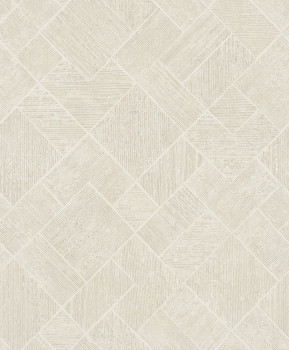 Vliesová tapeta s vinylovým povrchem, odstíny béžové, strukturovaný geometrický vzor s jemným pololeskem.