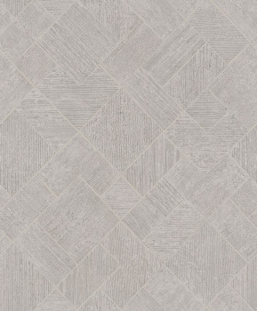 Vliesová tapeta s vinylovým povrchem, odstíny šedo-béžové, strukturovaný geometrický vzor s jemným pololeskem.