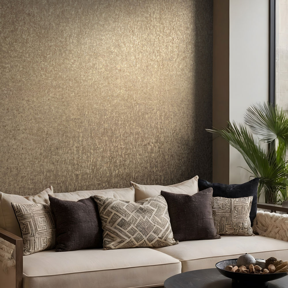 Vliesová tapeta s vinylovým povrchem, jemná škrábaná textura v odstínech hnědo-bronzové.