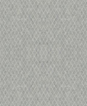 Vliesová tapeta s vinylovým povrchem, vzor kosočtverců na štukovém podkladu, odstíny pololesklé šedo-stříbrné.
