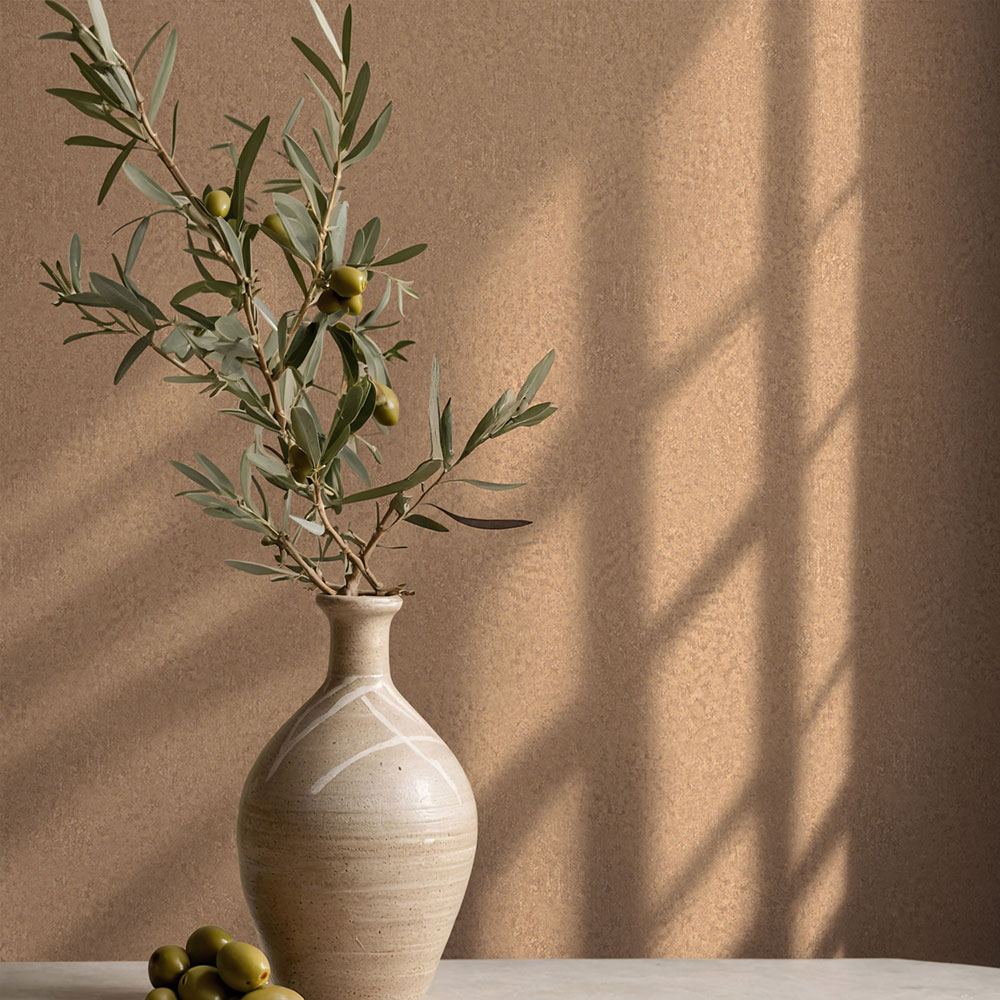 Vliesová tapeta s vinylovým povrchem, nepravidelná jemná textura v odstínech hnědé.