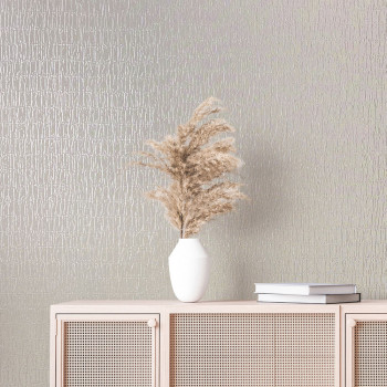 Vliesová tapeta s vinylovým povrchem, béžová látková textura s pololesklým mačkaným efektem.
