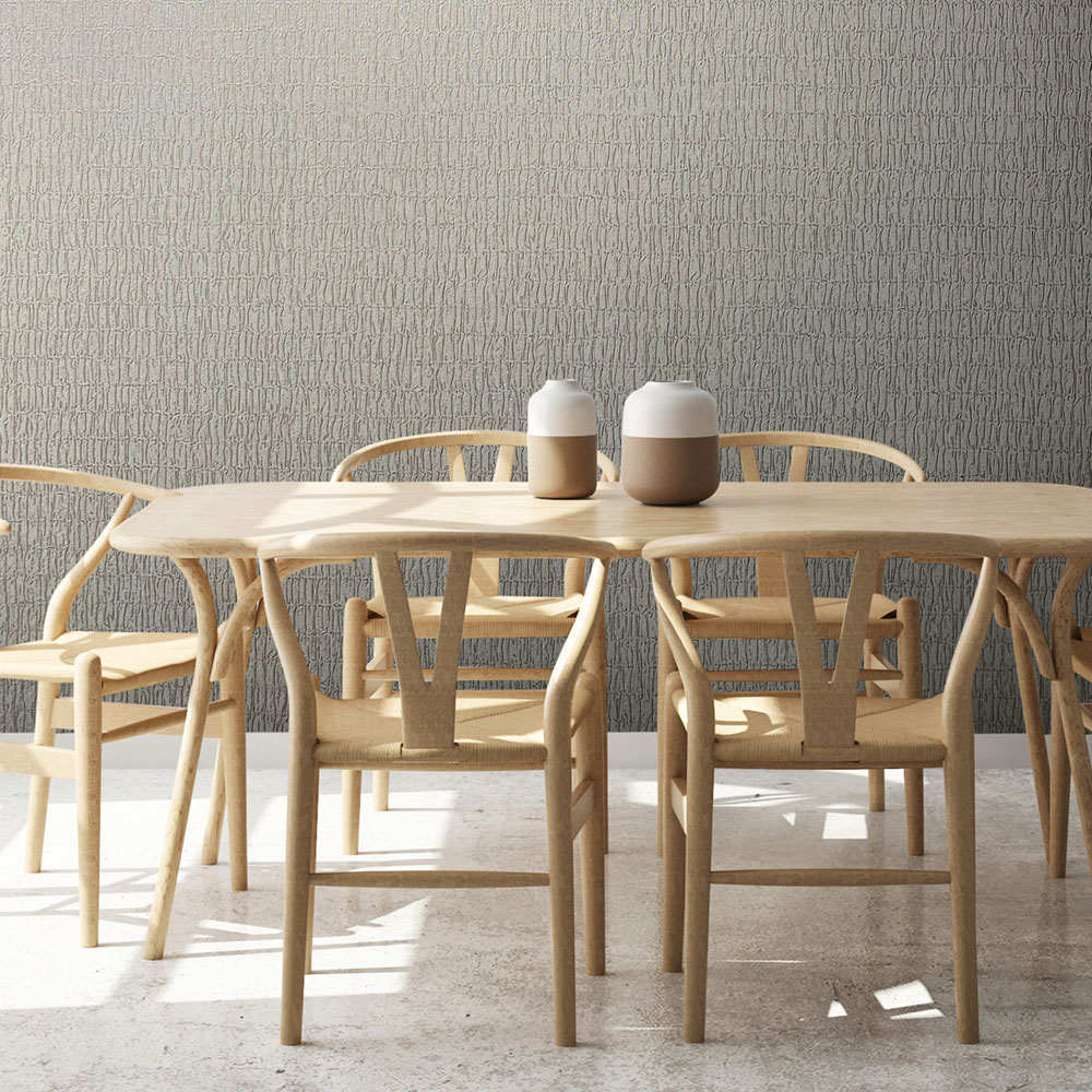 V kolekci objevíte reliéfní listy tvořící souvislé plochy, jemné lesky na lněné struktuře, elegantní motivy jeřábů nebo vzory připomínající skládané látky. Barevná paleta se pohybuje v neutrálních, přírodních tónech, které nechají vyniknout materiál i strukturu.