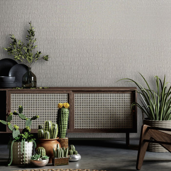 V kolekci objevíte reliéfní listy tvořící souvislé plochy, jemné lesky na lněné struktuře, elegantní motivy jeřábů nebo vzory připomínající skládané látky. Barevná paleta se pohybuje v neutrálních, přírodních tónech, které nechají vyniknout materiál i strukturu.