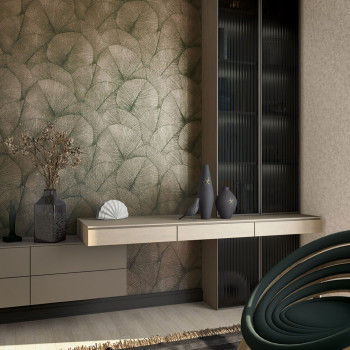 V kolekci objevíte reliéfní listy tvořící souvislé plochy, jemné lesky na lněné struktuře, elegantní motivy jeřábů nebo vzory připomínající skládané látky. Barevná paleta se pohybuje v neutrálních, přírodních tónech, které nechají vyniknout materiál i strukturu.