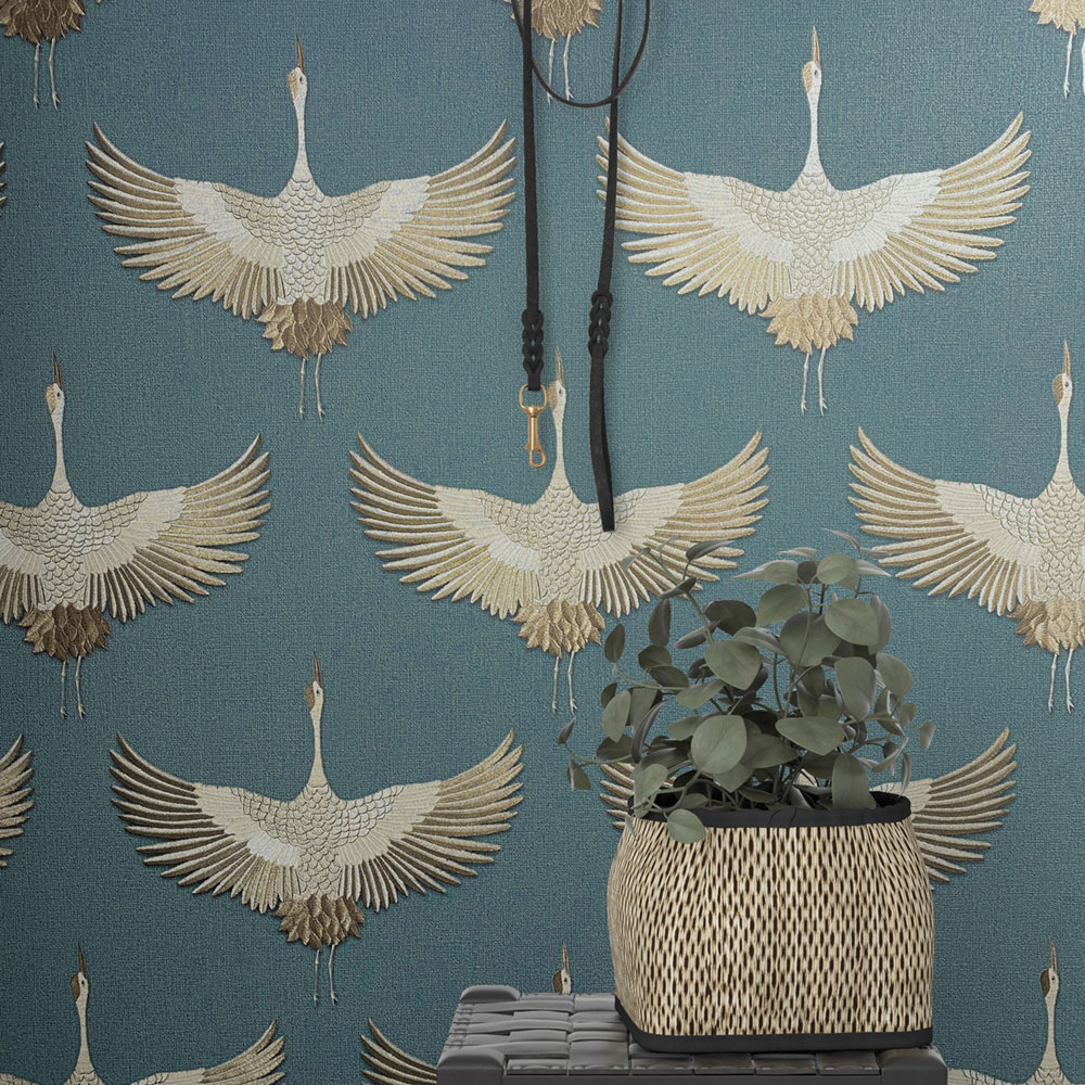 V kolekci objevíte reliéfní listy tvořící souvislé plochy, jemné lesky na lněné struktuře, elegantní motivy jeřábů nebo vzory připomínající skládané látky. Barevná paleta se pohybuje v neutrálních, přírodních tónech, které nechají vyniknout materiál i strukturu.