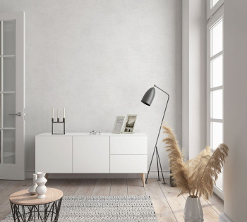 Vliesová tapeta s vinylovým povrchem, světle šedá látková textura s velmi jemným pololeskem.