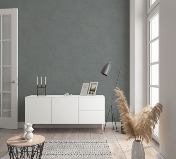 Vliesová tapeta s vinylovým povrchem, tmavě šedá látková textura s velmi jemným pololeskem.