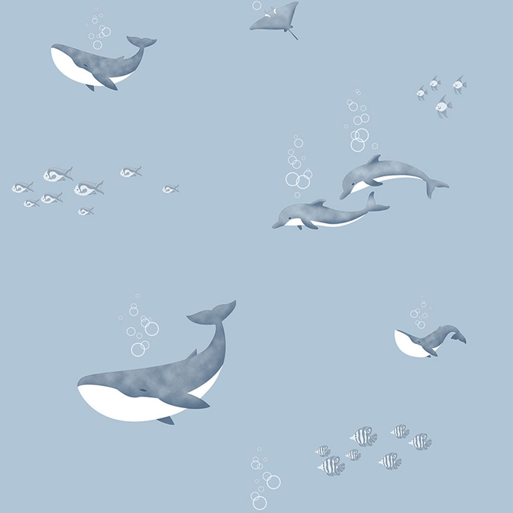 Vliesová tapeta na zeď - modrý podklad, motivy mořských ryb. Snadno kombinujte se souvisejícími vzory.