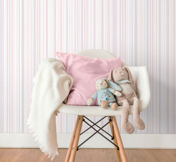 Vliesová tapeta na zeď - design úzkých proužků v odstínech šedé, béžové, růžové, terakoty a bílé. Snadno kombinujte se souvisejícími tapetami.