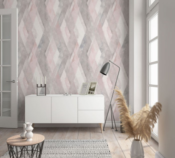 Vliesová tapeta s vinylovým povrchem, látková textura, efekt akvarelu, odstíny šedé a staro-růžové.