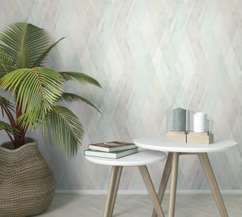 Vliesová tapeta s vinylovým povrchem, látková textura, efekt akvarelu, odstíny béžové, růžové, tyrkysové.