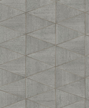 Vliesová tapeta s vinylovým povrchem, imitace dřevěného obložení, odstíny šedé, obrysy šedo-béžové.